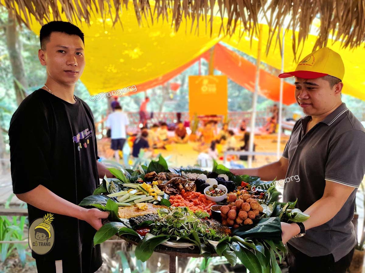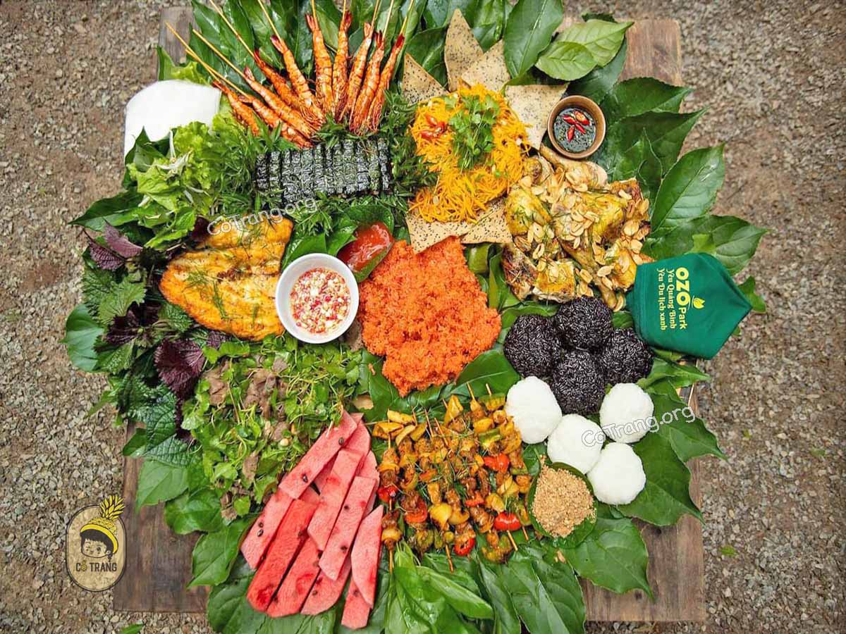 Các món ăn nổi bật phải kể đến: Mẹt Đặc Sản, Gà Nướng, Tôm Nướng, Xôi, Rau Rừng Xào Tỏi, Cá Sông Nướng...