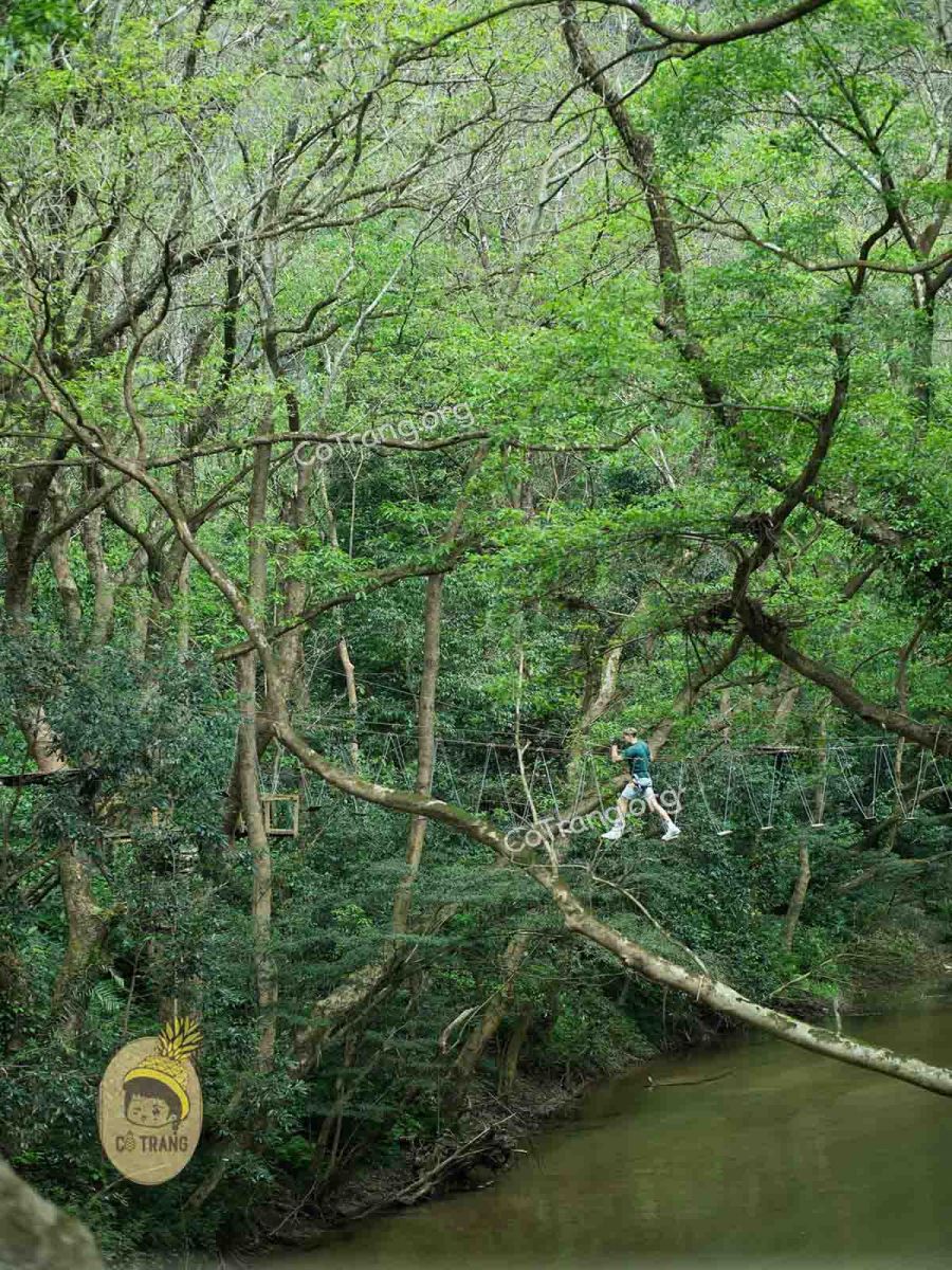 Khi vượt qua 12 trò chơi trên cây bạn sẽ cảm thấy sự khoan khoái xen lẫn cảm xúc tự hào vì bản thân đã vượt qua những chặng đường khó khăn nhất và đắm chìm tận hưởng thiên nhiên với màn trượt Zipline bắc qua dòng suối trong xanh…