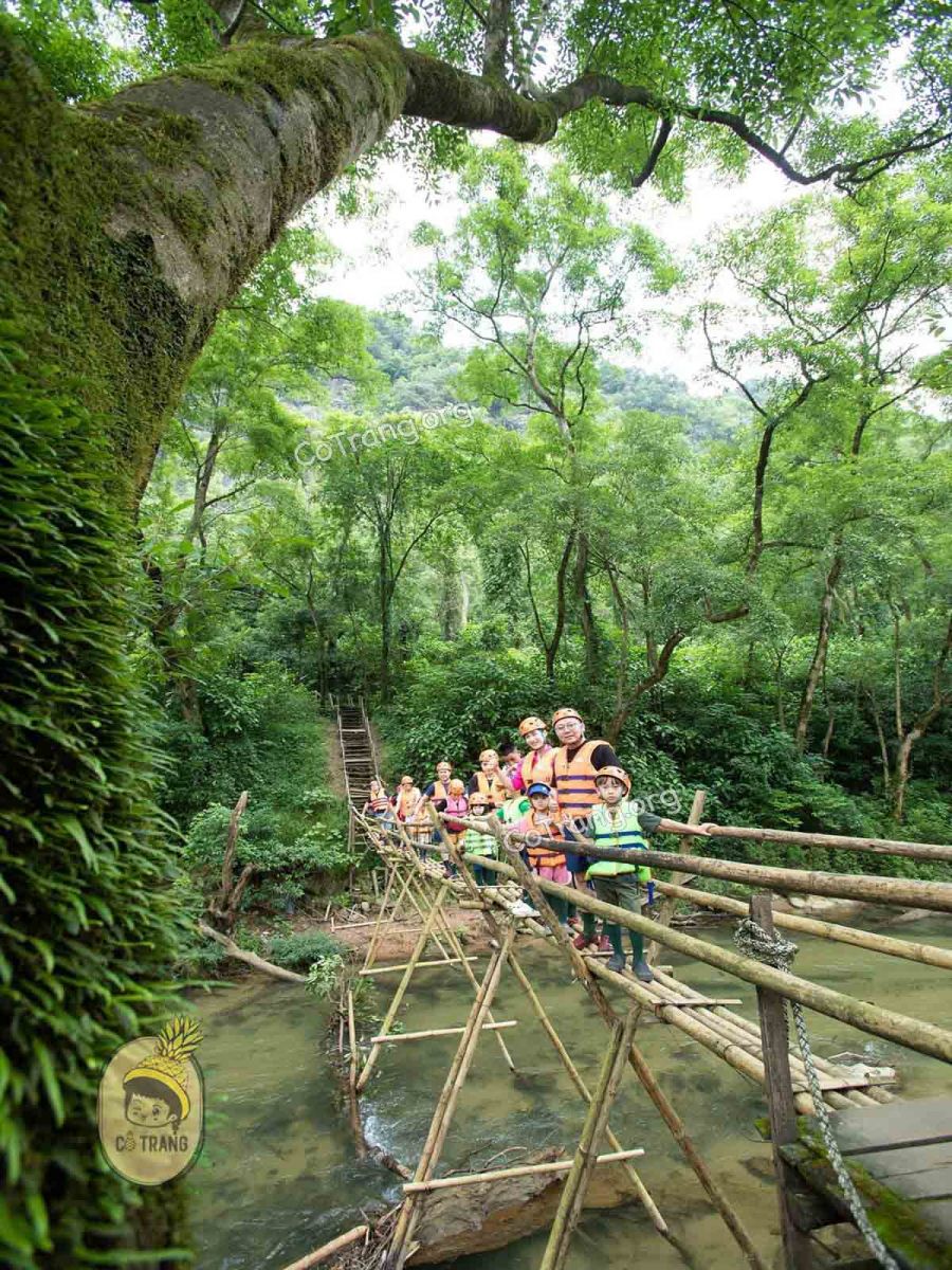 - Thử thách hồi hộp băng qua cầu Khỉ bắc ngang suối OZO