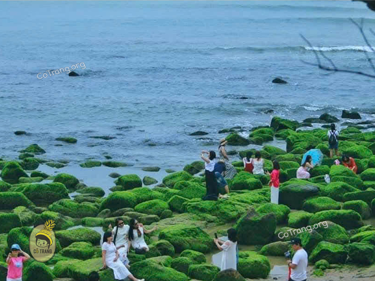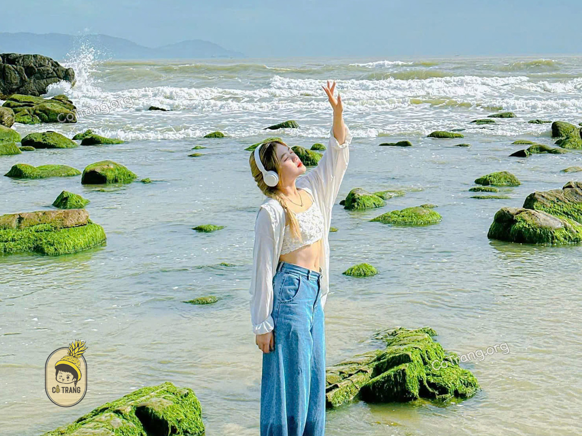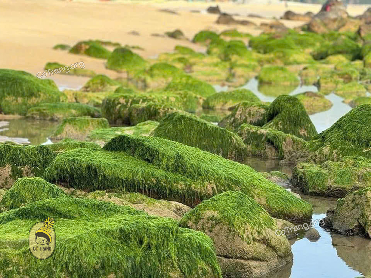 Bãi Rêu Nam Ô là thiên đường cho những tín đồ đam mê nhiếp ảnh. Khi thủy triều rút, lớp rêu xanh mướt lộ ra trên các tảng đá, tạo nên khung cảnh huyền ảo, lung linh dưới ánh nắng. Đây chính là background hoàn hảo để bạn lưu giữ những bức ảnh “triệu like”.
