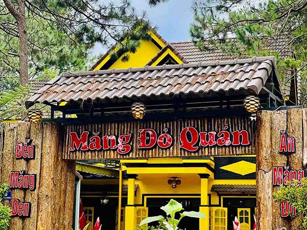 Khoác lên mình chiếc áo vàng tươi sáng xen lẫn sắc đen và đỏ cuốn hút, Măng Đỏ Quán là điểm nhấn nổi bật giữa rừng thông xanh ngát và mênh mông. Bạn sẽ có cơ hội thưởng thức các món ngon nức tiếng của rừng núi đại ngàn trong khung cảnh thiên nhiên thơ mộng pha lẫn chút bình dị, mộc mạc.